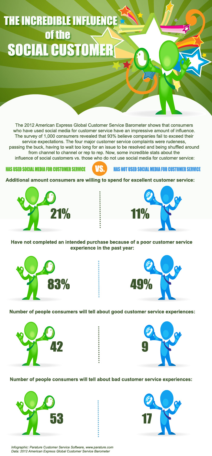 The 2012 American Express Global Customer Service Barometer shows that consumers who have used social media for customer service have an impressive amount of influence.