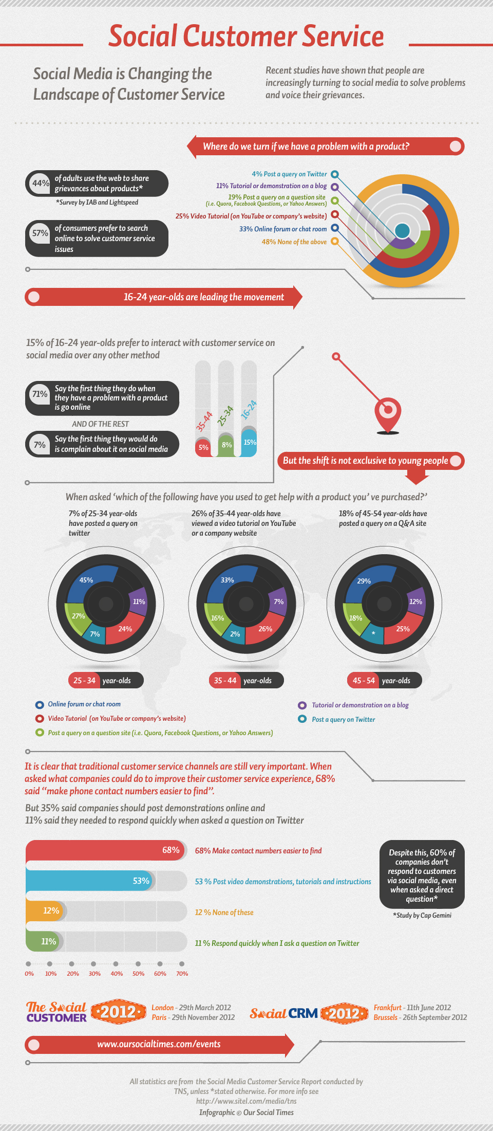An interesting infographic by our social times .shows how consumers are increasingly turning to social media to solve problems but also as important to a brand, to air their grievances :