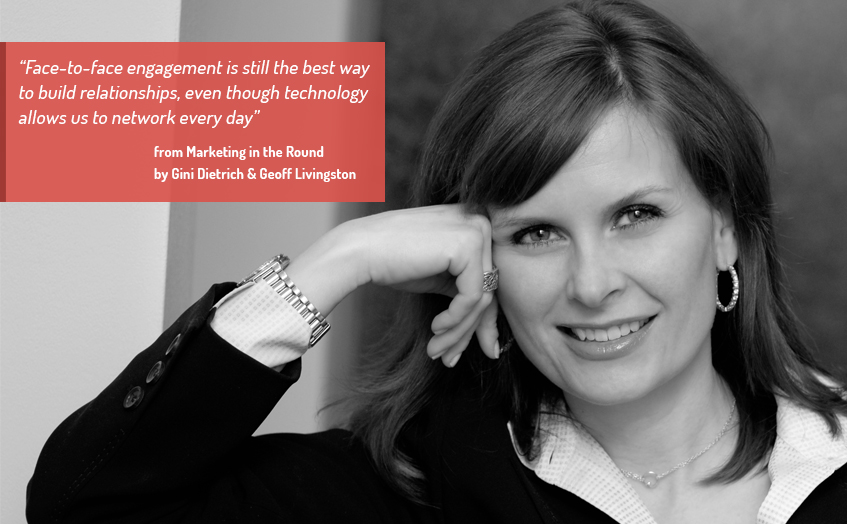 Brandingmag: In your book Marketing in the Round, you and your co-author state “Face-to-face engagement is still the best way to build relationships, even though technology allows us to network everyday. Being able to read body language, hear inflection in tone and even pinpoint sarcasm helps build those relationships even more quickly than daily online communications.” It’s easy to see how that applies to smaller organization, like your own, but how do you see that applying to larger marketing organizations?