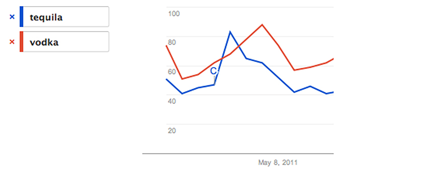 So what does all this mean? It means that consumers’ digital behavior around spirits is visible and to a large extent predictable. The above was produced from one data source only – Google Trends. Combined with social media data, site and app analytics, and paid media response rates the opportunity presents for spirits brands to glean some pretty potent insights.