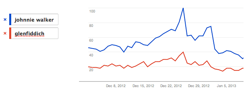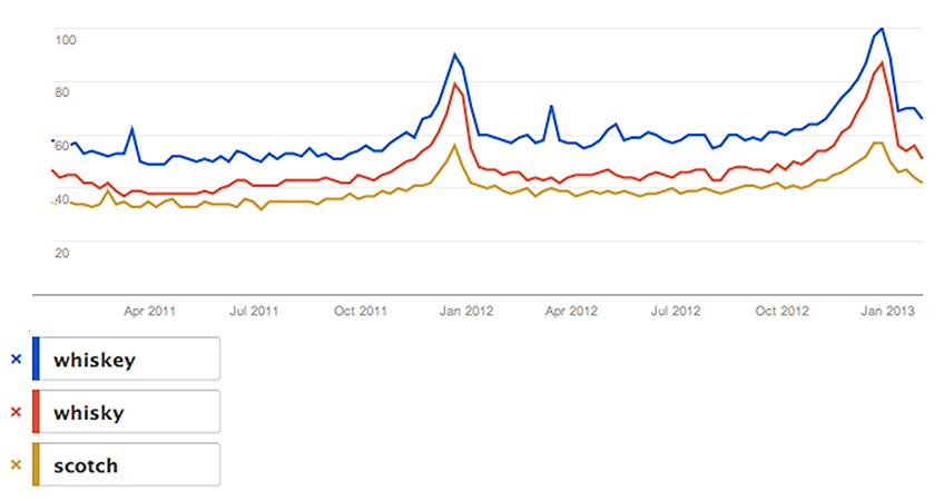 Figure 1: Folks do a lot of research around all kinds of whiskies leading up to the holiday season.