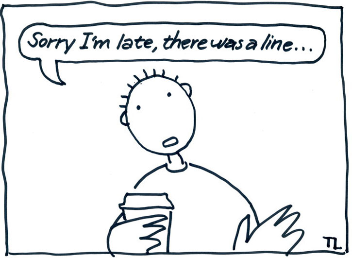 Actually, now that I’ve thought about it a bit, maybe chewing gum, bringing my own coffee and being late are symptoms of the same delusion. As in, I’ll just show them how relaxed and in charge I am by chewing gum, stopping for coffee on the way, and being fashionably late. You know, just chilling a bit. Its cool.