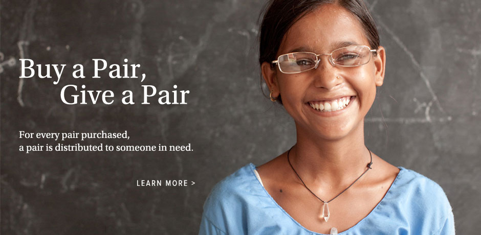 Their commitment: For every pair of glasses purchased, the company pays for the production of a pair of eyeglasses for Vision Spring.