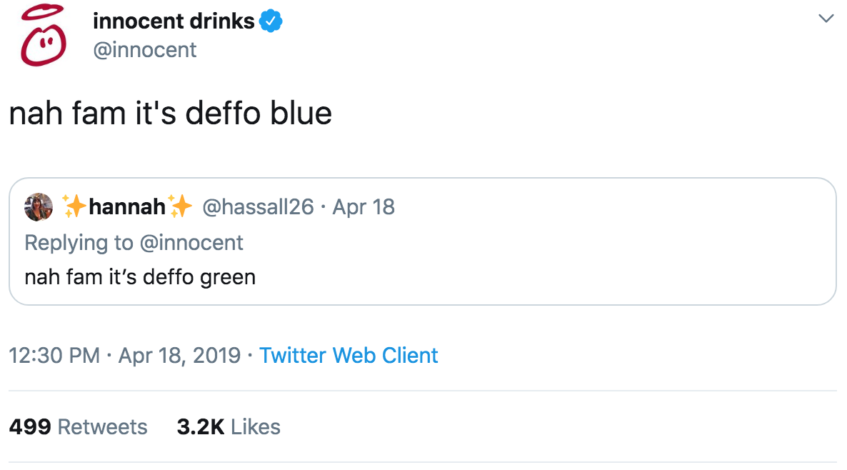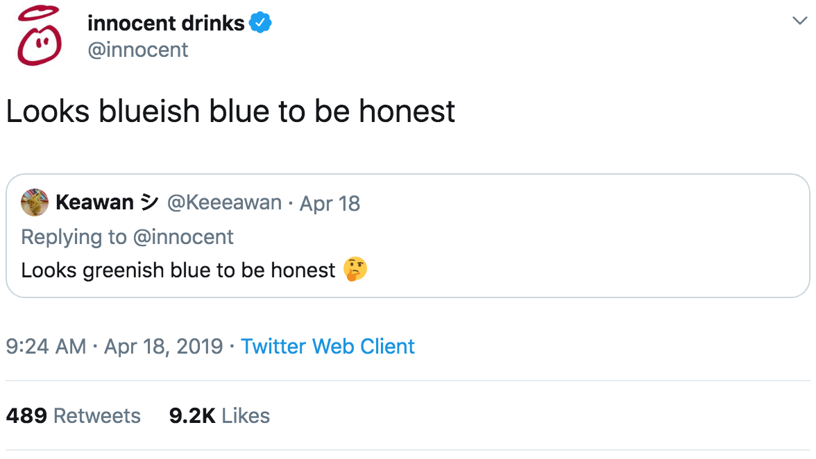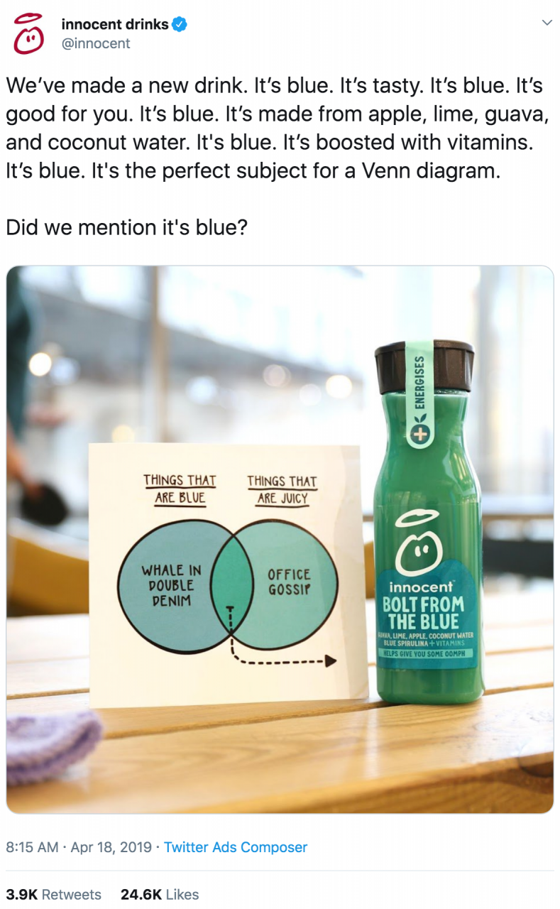 The company launched a new product on April 18th, 2019, and in their own unique way, focused their marketing efforts on the color of their drink. Through this, Innocent smoothie was able to get 25,000 likes and around 4,000 retweets in only a few days.