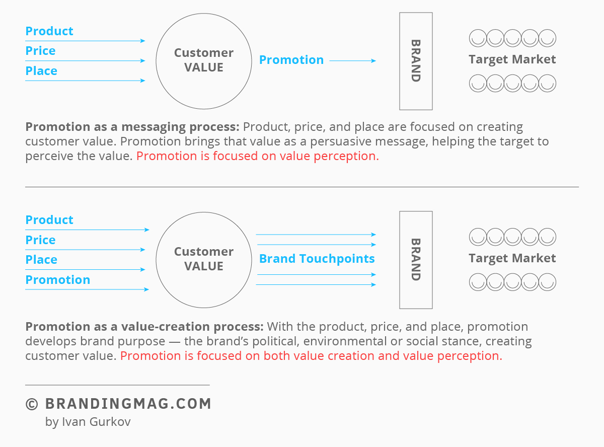 In the traditional Marketing-mix framework, value is created on the basis of product, price, and distribution, and the promotion expresses it as a message. In the new ecosystems of brands that earn their customers with passion and purpose, the role of promotion (marketing communications) is upgraded to both informant and customer-value creator.