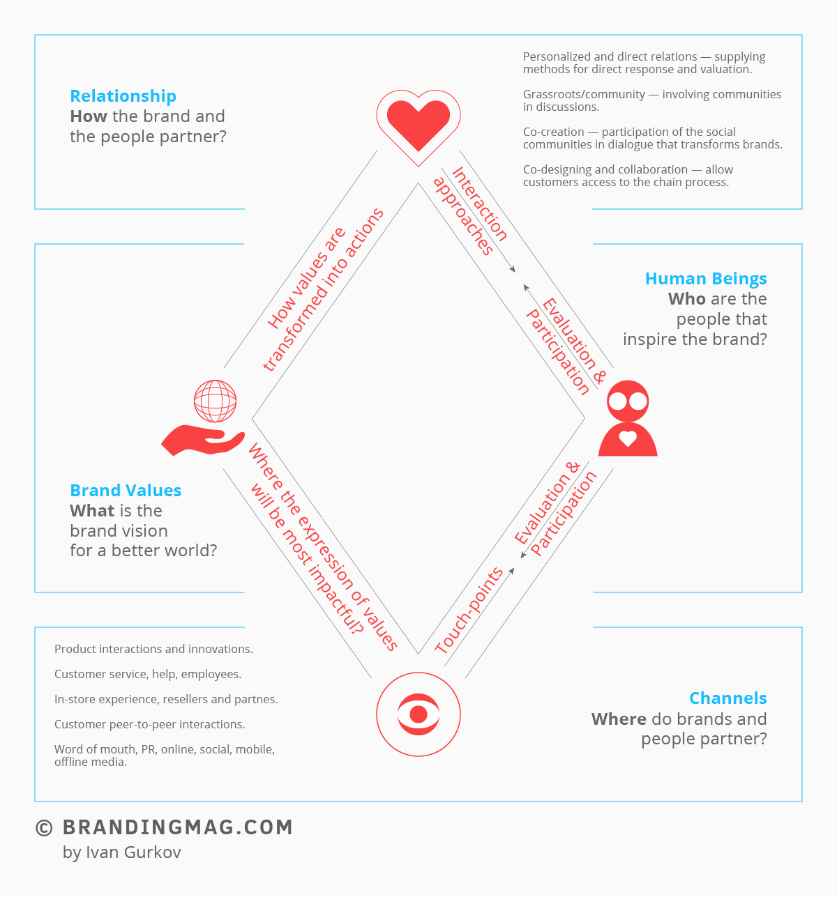 Human Relation Management — customer participation as a fundamental element in the business model. Communication 3.0 helps people recognize themselves in the company’s values and inspires them to participate in a brand community — an ecosystem for common-good creation by improving the company’s products, services, and its role in society.