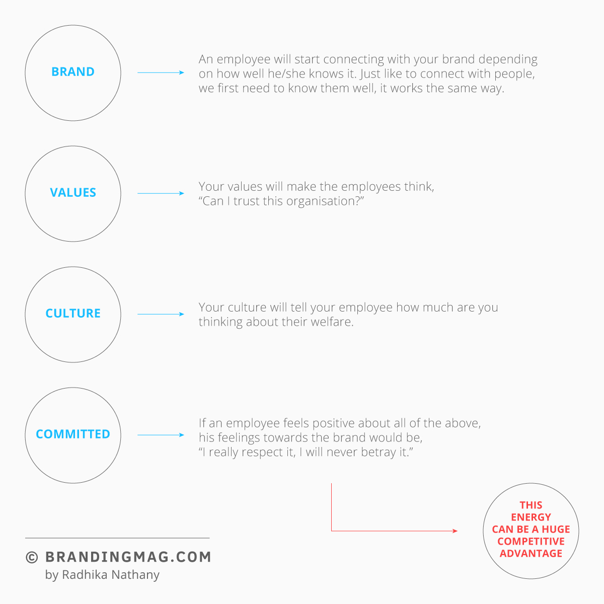 This really requires your brand to not just stay in the boardroom but every employee in the organization needs to have a feeling that it owns a part of it. They need to feel connected to it. They need to be made a part of its wins and losses and given equal respect and regard.