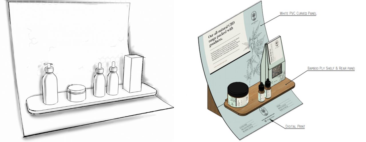 Our client wanted to grab some eyes in-store, and so it made sense for them to create a point-of-sales stand to hold all their products. As their budget was quite low, we had to come up with something which didn’t have all the bells and whistles (e.g., touch screens, lighting, sound, etc.) but was still able to draw some eyes.
