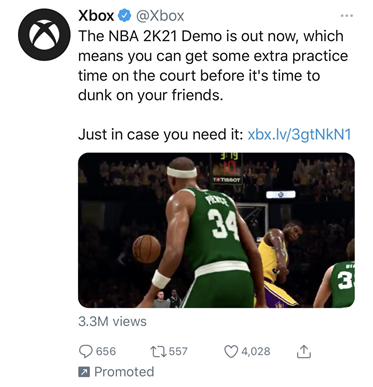 Regardless of the fact that I do not have a games console (I’m sure many middle-aged men with kids probably do), I don’t watch the NBA, and as far as I know, it’s not on UK TV. Why show me a basketball game advert? I looked up the data on interest in sports in the UK and basketball is not in the top 15. More people are interested in Lawn Bowls in the UK than basketball. Xbox must have a football (that’s soccer if you are reading this in the US), rugby, or cricket game it can show me based on my geographic data?