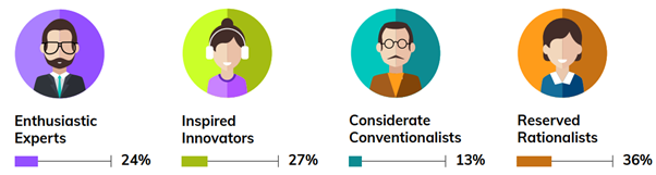 - Inspired innovators: Embrace innovation. Have a clear understanding of the importance of sustainability. Excited to use technology to stay on top of sustainable trends.