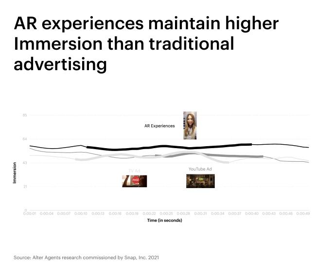 Because augmented reality (AR) is highly immersive, it represents the next big opportunity for brands to connect on a deeper level. A research study Snap commissioned from Alter Agents has shown that AR offers highly engaging experiences across the full spectrum of different platforms and media types.