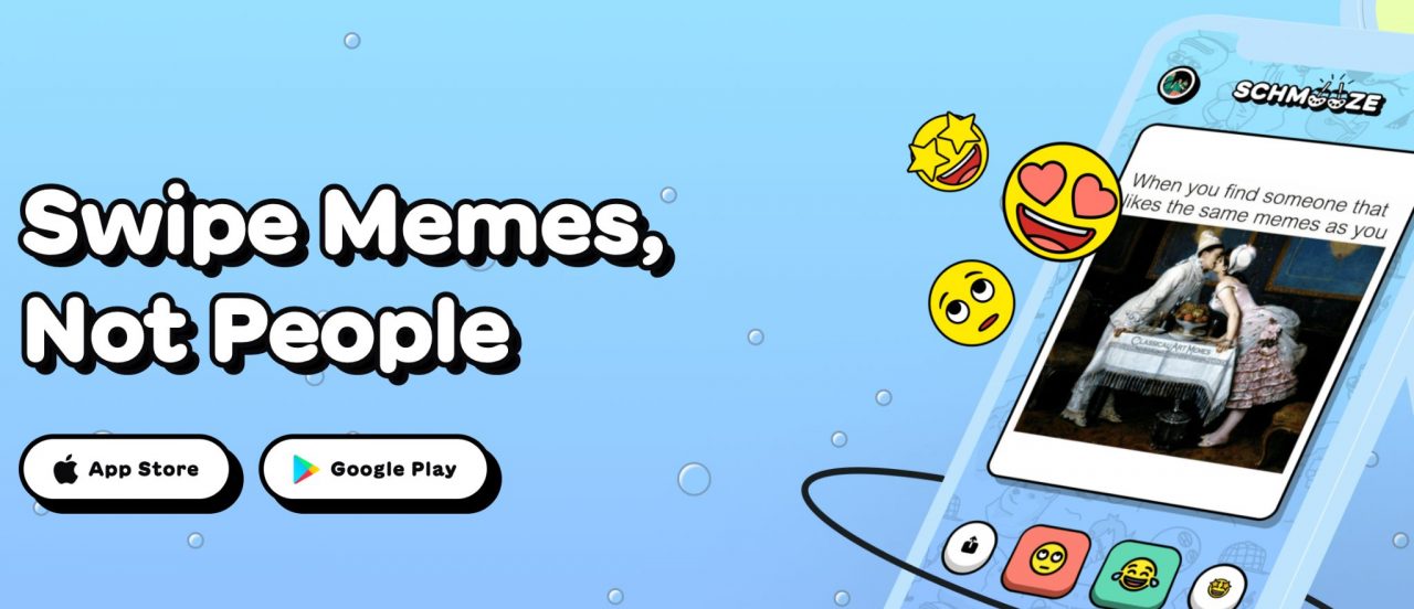 The dating app Schmooze allows users to “swipe memes, not people”, matching each other based on their sense of humor. This meme-centric approach has gained over 300,000 users since it was launched on a college campus in 2020.