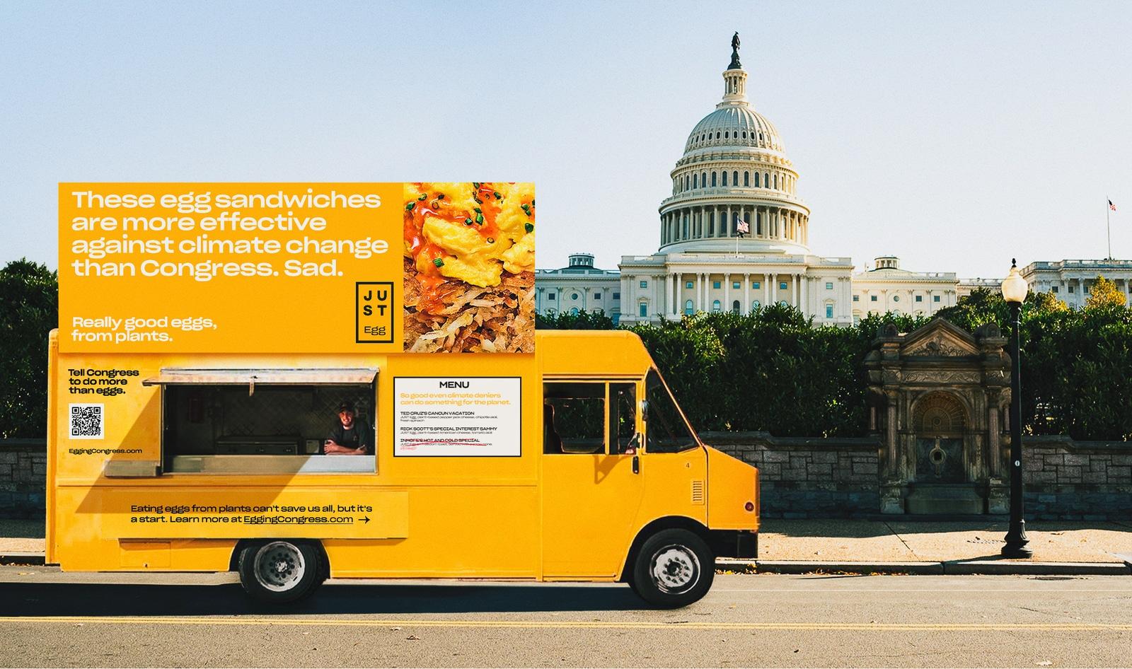 The Silicon Valley FoodTech unicorn JUST Egg knows how this works. To draw attention to the problem of global warming during Earth Month, the eco-friendly brand JUST Egg elegantly trolled American legislators on their own territory in Washington. JUST Egg has captured a 98% market share in egg substitutes in the US, which can be considered a huge product influencer.