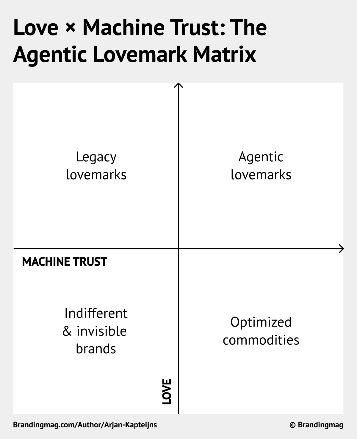 Brands that carry no emotional meaning for people and offer no structural clarity to systems. They fade into irrelevance. - High machine trust, low love: Optimized Commodities