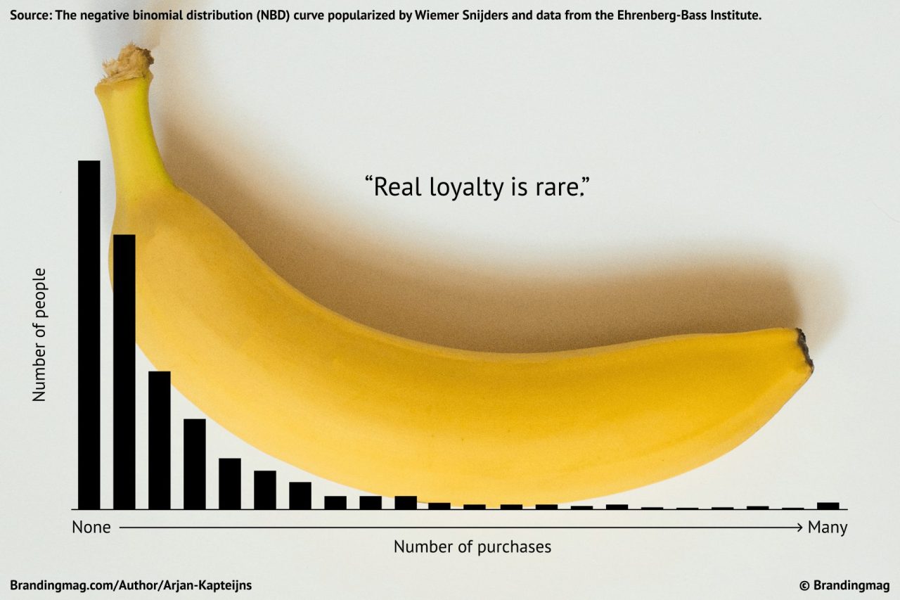 For more than a decade, the Ehrenberg-Bass negative binomial curve shaped how marketers think about loyalty. Byron Sharp states that loyalty is mostly a by-product of penetration and availability. Heavy buyers may look loyal because of buying patterns. Light buyers appear fickle because of statistical distribution. The famous banana principle is the industry’s shorthand to illustrate that real loyalty is rare.