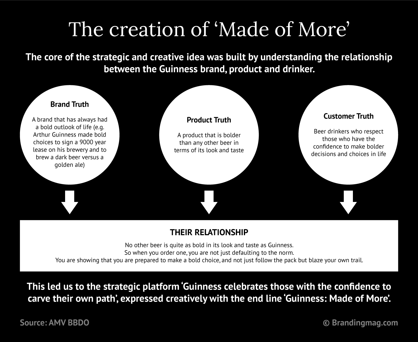 Brand Platforms are not just nice catch-phrases. It goes beyond that, it’s a fundamental human truth that the brand can champion because of its relationship to the reality the truth describes. To build a strong platform you need to ask, what is true about your brand? You could focus on the truth about the product formulation like Guinness does, or a brand journey like Johnnie Walker, or generally how consumers perceive or see the brand. Then, tie that to how consumers see themselves or want to see themselves. At this level, you are simply looking for a fundamental human truth that your brand is better suited to defend, promote and grow with. The intersection of brand truth and consumer truth is a good place to start drawing inspiration for your Brand Platform. No matter what the proposition is, never forget that the consumer should care enough about it. They should see how it impacts their everyday life, with or without your product.