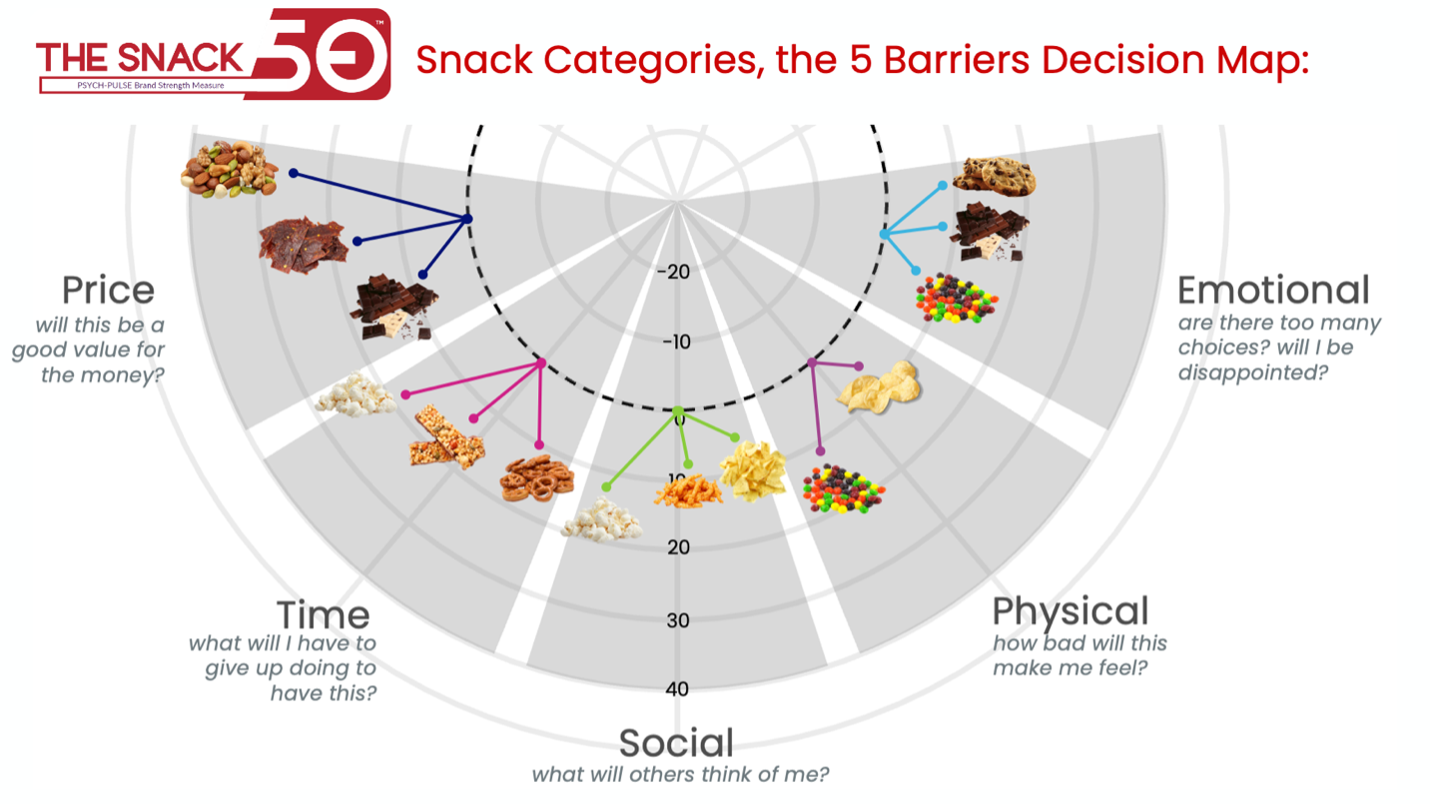 Within this process, five predictable barriers–including time–that could potentially hinder a purchase decision are weighed. Looking at a study of the top 50 snack brands in the US, consumers perceive ready-to-eat popcorn to be the most costly snacking option when the currency being weighed is time.