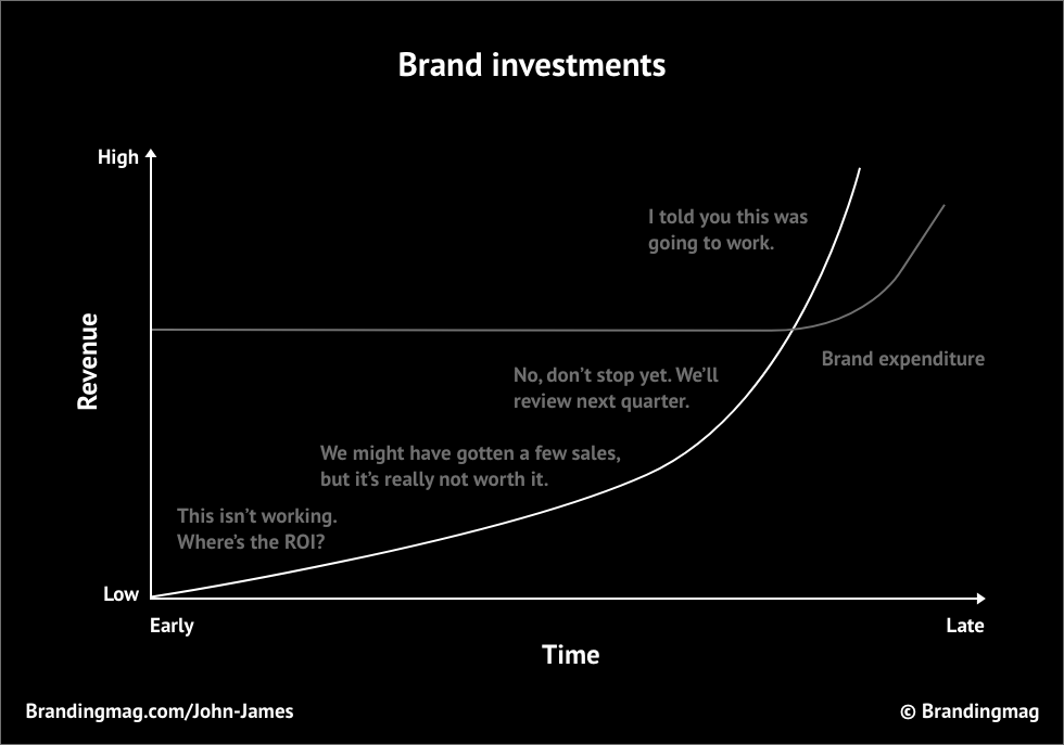 Brands work as a halo effect over the entire organization. They operate like planetary gravity. The bigger the planet gets, the more things are sucked into their gravity and the harder it is for things to escape. We all know planets don’t grow overnight (no matter how much we want them to), yet this is exactly how brand campaigns are sold.