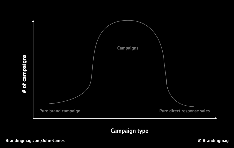 Brand campaigns are a popular choice after previous efforts–especially sales-focused “performance” marketing–have failed to hit the mark. This instead of diagnosing, improving, or iterating. Immature management will flip-flop back and forth between extremes, often with a new head of marketing, agency, and campaign to boot. They do this because they think marketing is relatively simple and binary.
