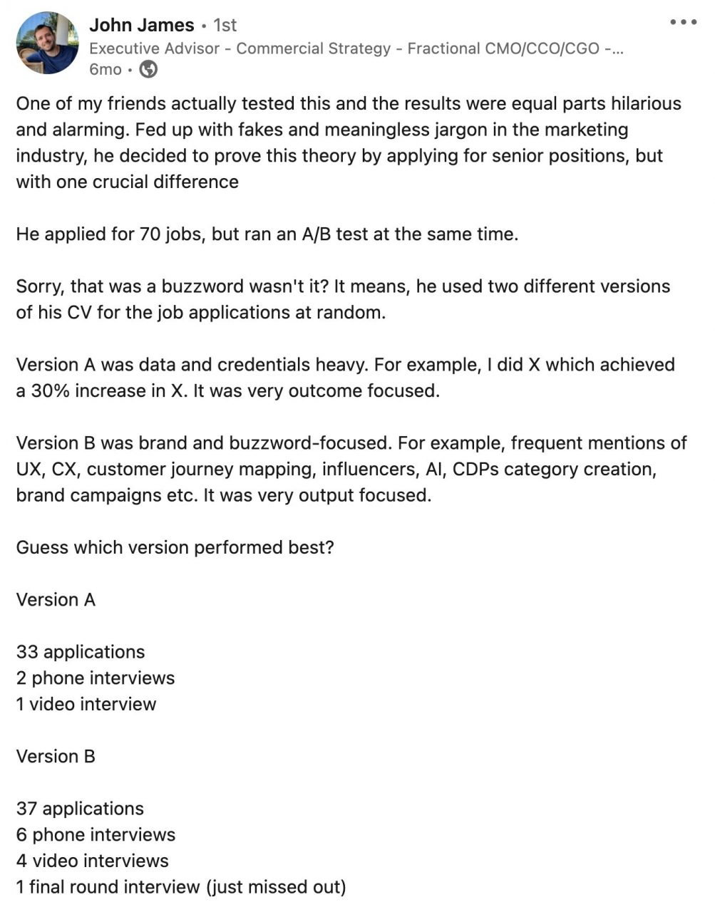 There are a lot of career marketers who don’t really care about the business they work for and just want to add a feather to their CV cap. In an interview, if you talk about how you helped increase distribution, optimized pricing, generated 125 leads worth $160k in revenue, or spent 6 months improving operational hygiene…this doesn’t exactly impress anyone.