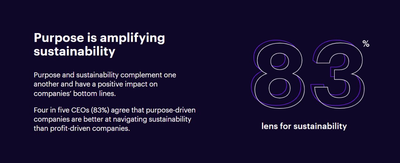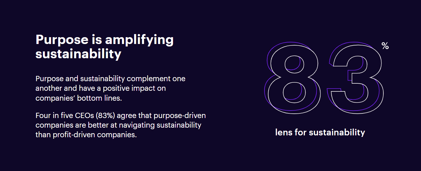 Based on our latest CEO Purpose Report, it is clear that company leaders are more certain than ever about the power of purpose: One in four CEOs (27%) say they already have a company purpose, and 59% say that while they don’t have a company purpose yet, they want to make one.