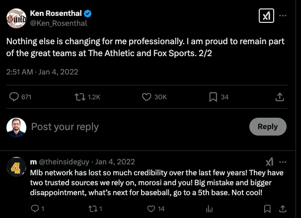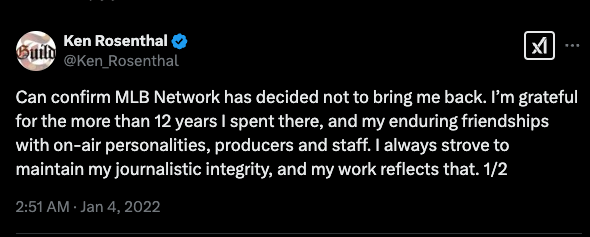 A few former baseball players got together and created a massive sports podcast network called Foul Territory. The main reporter and one of their hosts is none other than Ken Rosenthal, which is interesting because he’s sharing information about the very things he writes about for The Athletic. You might think The Times would frown on this or outright prohibit it.