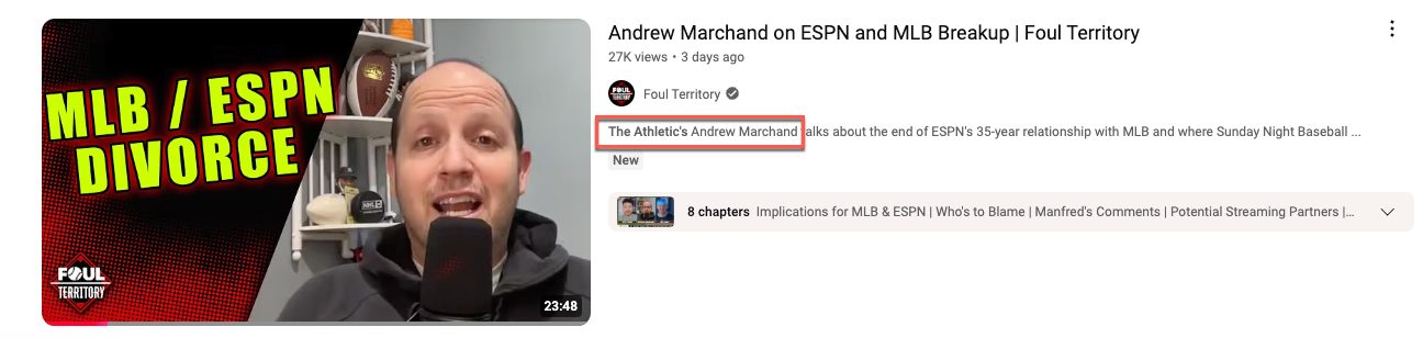 A few former baseball players got together and created a massive sports podcast network called Foul Territory. The main reporter and one of their hosts is none other than Ken Rosenthal, which is interesting because he’s sharing information about the very things he writes about for The Athletic. You might think The Times would frown on this or outright prohibit it.